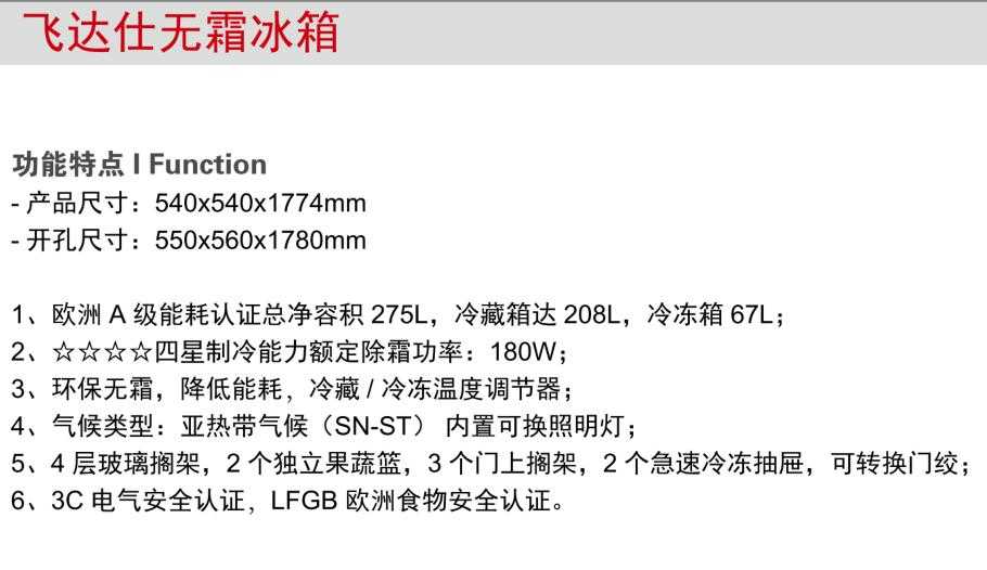 飛達(dá)仕無霜冰箱